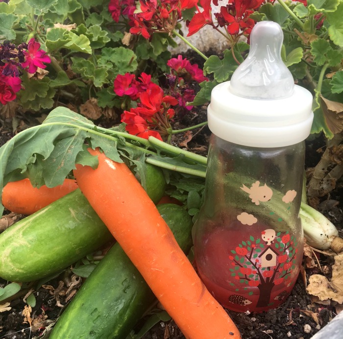 Finding the time to make a juice felt like a long lost dream in those first blurry weeks postpartum. But at four months, I thought, ‘we can do this.’ The first time I made a vegetable juice with Ajax in the sling, it felt like a triumph and I wondered why I hadn’t done it sooner.